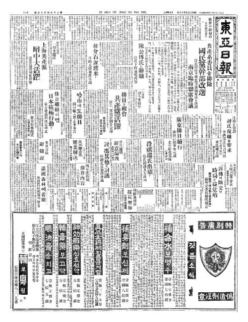 - 共產系委員(공산계위원)을排除(배제) 國民黨幹部改選(국민당간부개선)