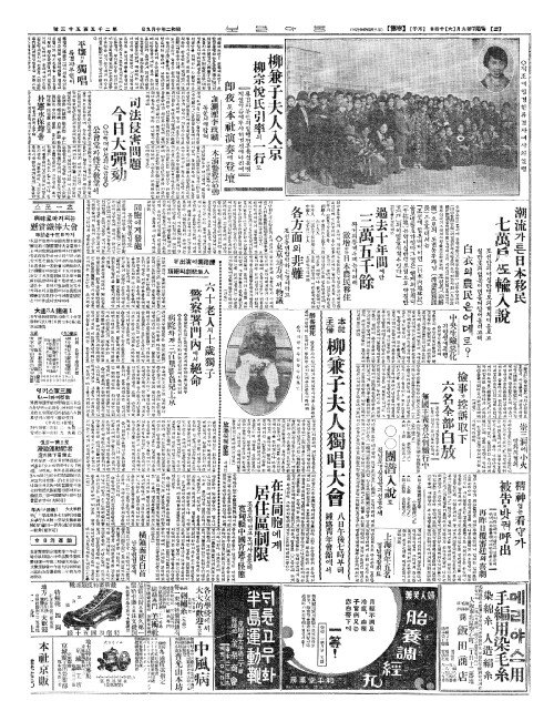 - 柳兼子夫人入京(류겸자부인입경) 柳宗悅氏引率(류종열씨인솔)의一行(일행)도