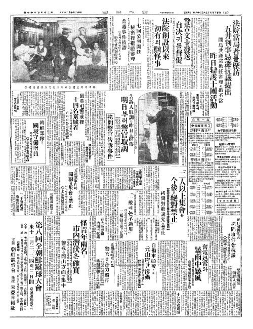 - 法院當局者(법원당국자)를歷訪(력방) 五井判事忌避抗議提出(오정판사기피항의제출)