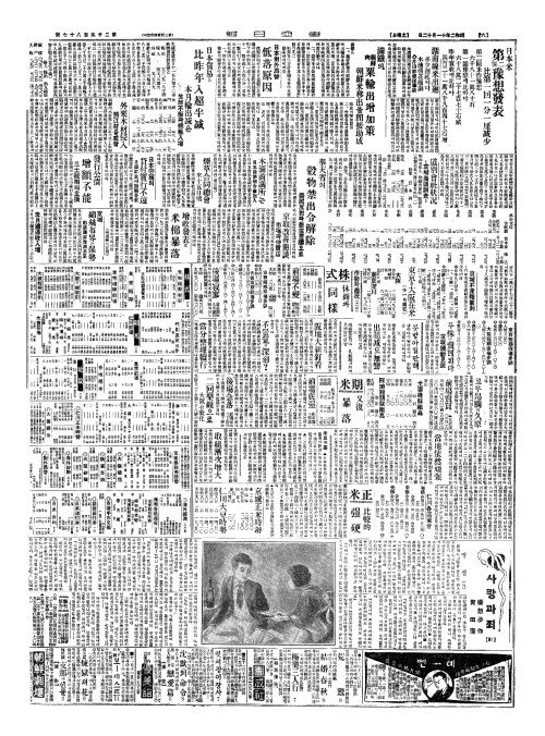 - 增收發表(증수발표)로 米棉暴落(미면포낙)