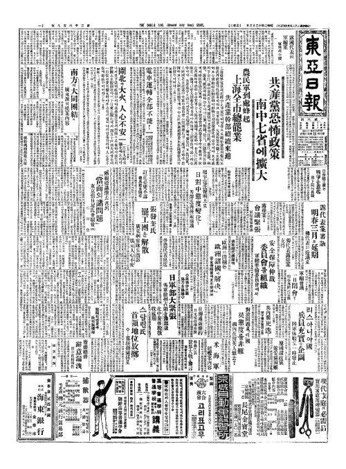 - 共産黨恐怖政策(공산당공포정책) 南中七省(남중칠성)에擴大(확대)
