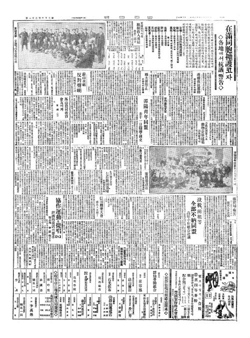 - 在滿同胞擁護(재만동포옹호)코자 ◇各地(각지)에서抗議(항의)、警吿(경고)◇