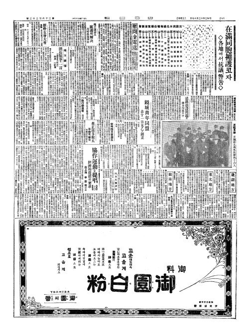 - 在滿同胞擁護(재만동포옹호)코자 ◇各地(각지)에서抗議(항의)、警吿(경고)◇