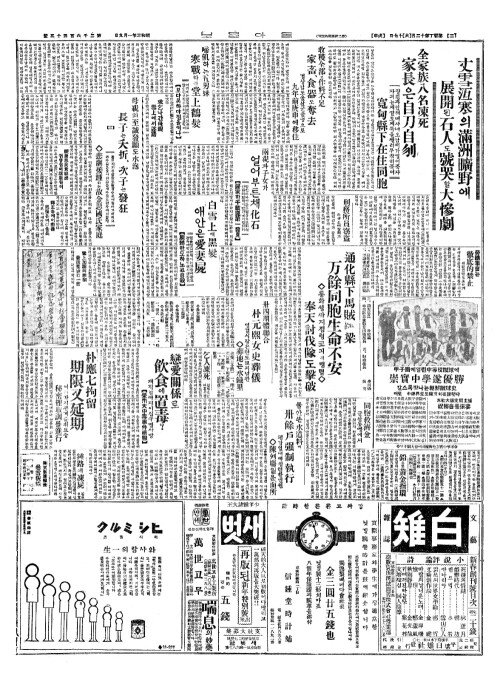 - 丈雪沍寒(장설호한)의滿洲曠野(만주광야)에 展開(전개)된石人(석인)도號哭(호곡)할大慘劇(대참극)