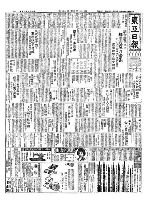 - 議會解散(의회해산)으로 無產政黨(무산정당)의緊張(긴장)