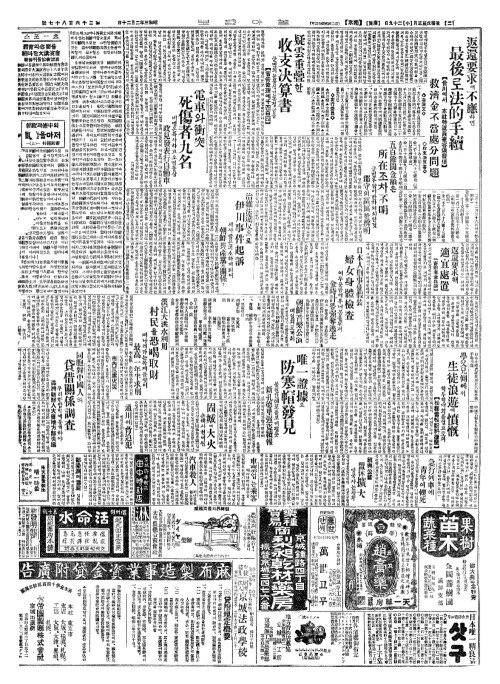 - 電車(전차)와衝突(충돌) 死傷者九名(사상자구명)