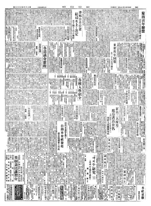 - 東萊靑年同盟(동내청년동맹) 去二十六日(거이십륙일)에創立(창입)