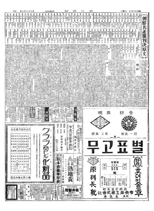 - 中外筆禍事件(중외필화사건) 明七日(명칠일)에公判(공판)