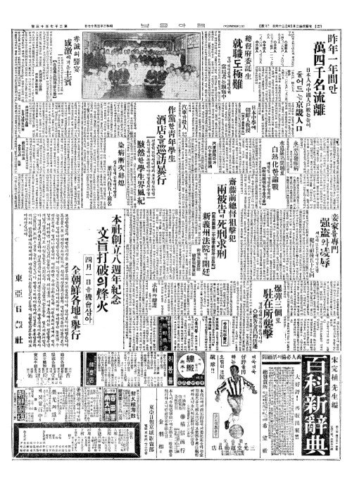 - 本社創立八週年紀念(본사창입팔주년기념) 文盲打破(문맹타파)의烽火(봉화)