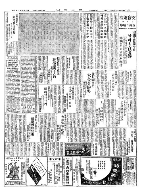 - 損害數十萬圓(손해삭십만원) 死傷四十名(사상사십명)