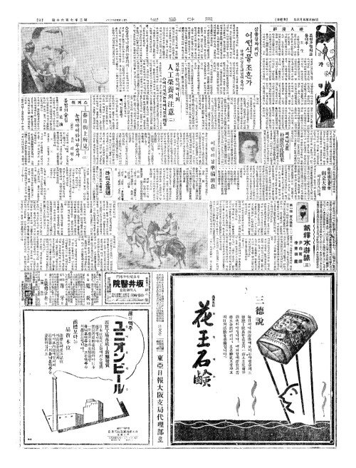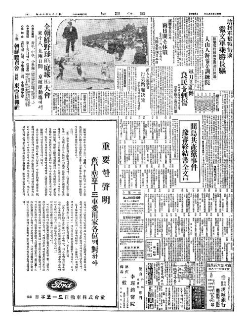 - 野球聯盟戰畵報(야구련맹전화보) (上右(상우))백렬된첫날의배재응원석(上左(상좌))본사사장의시구식 (下(하))전휘문대전배재전광경