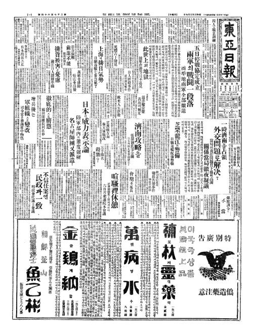 - 上海(상해)에排日氣勢(배일기세) 日驅逐艦七隻急航(일구축함칠척급항)?