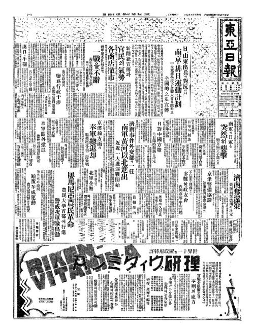 - 日(일)、山東出兵(산동출병)에對抗(대항)하야 南京(남경)이排日運動計劃(배일운동계획)