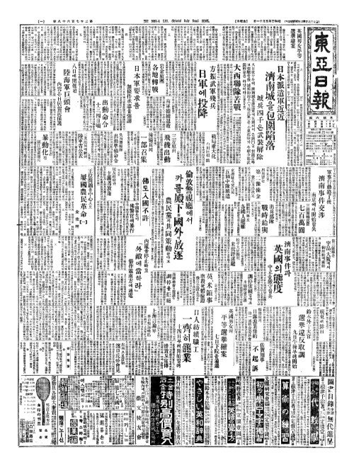 - 日本派遣軍近近(일본파견군근근) 濟南城(제남성)을包圍陷落(포위함낙)