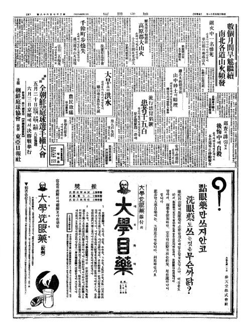 - 數個月間旱魃繼續(수개월간한발계속) 南北各道山火頻發(남배각도산화빈발)