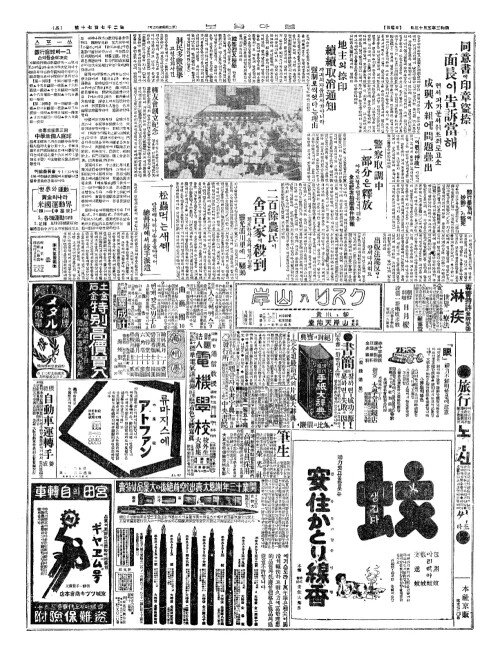 - 永興農民同盟(영흥농민동맹) 一切集會禁止(일절집회금지)