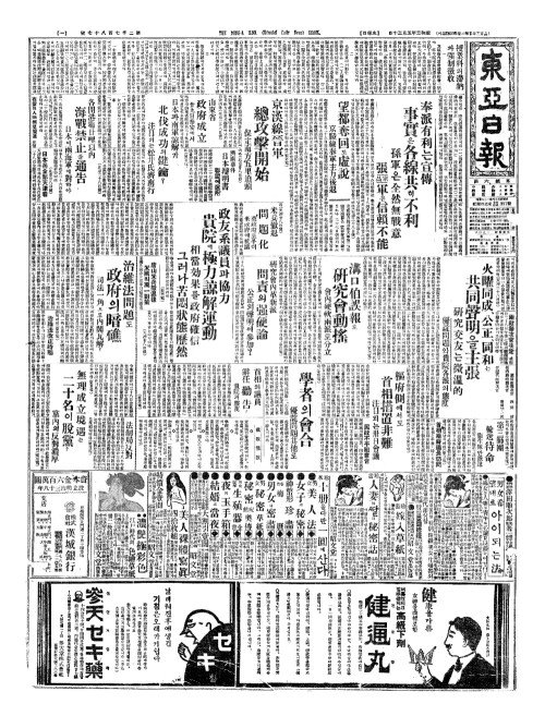- 山東省(산동성) 政府成立(정부성입) 廿九日泰安(입구일태안)에서