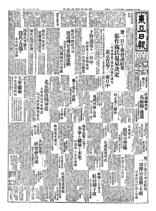 - 卅一日午後會議結果(삽일일오후회의결과) 張作霖氏退京决定(장작림씨퇴경결정)