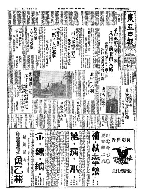 - 革命軍第三師(혁명군제삼사)의三團(삼단) 八日午前北京入城(팔일오전북경입성)