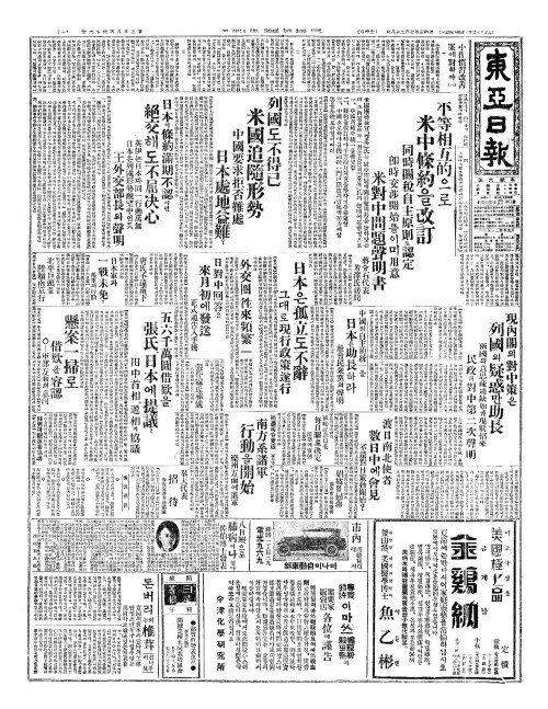 - 列國(렬국)도不得已(부득이) 米國追隨形勢(미국추수형세) 中國要求拒否難處(중국요구거부난처) 日本處地益難(일본처지익난)?
