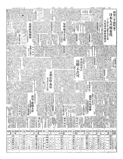 - 每年三千餘町步(매년삼천여정보)가 日本人(일본인)의所有化(소유화)
