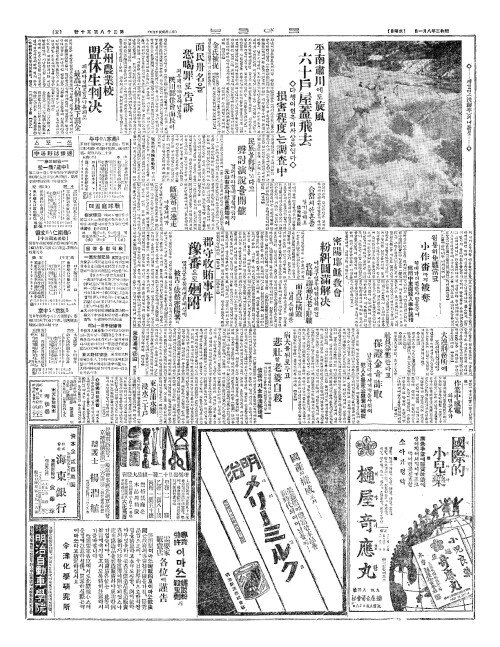 - 平南肅川(평남숙천)에도旋風(선풍) 六十戶屋蓋飛去(륙십호옥개비거)
