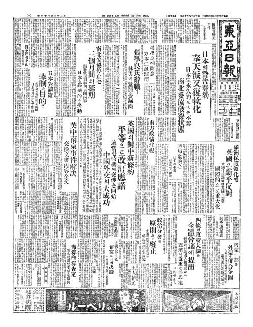 - 日本(일본)의警吿奏効(경고주효) 奉天派又復軟化(봉천파우복연화)