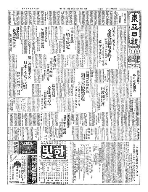 - 蔣介石氏努力(장개석씨노력)으로 全體會議無事終了(전체회의무사종료)