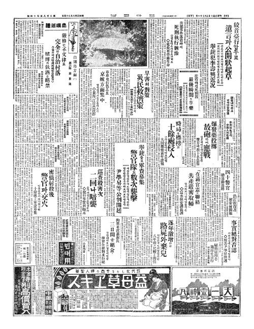 - 拳銃(권총)들고軍資募集(군자모집) 警官隊(경관대)도數次襲擊(수차습격)