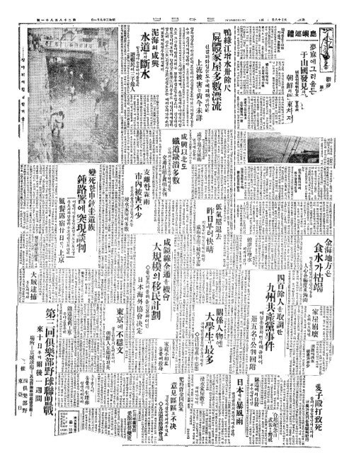 - 鴨綠江增水卅餘尺(압녹강증수삽여척) 屍體家屋多數漂流(시체가옥다삭표류)