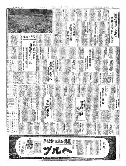 - 慘澹(참담)한旱(한)、水災(수재)와 各地同胞(각지동포)의뜨거운同情(동정)