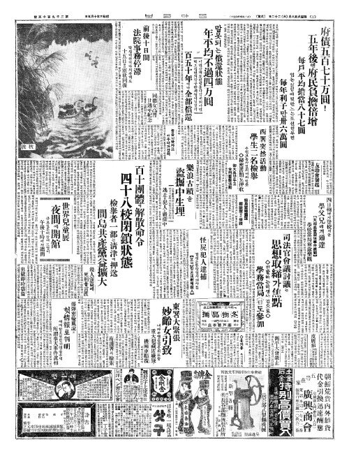 - 百十團體(백십단체)에解散命令(해산명영) 四十八校閉鎖狀態(사십팔교폐쇄상태)