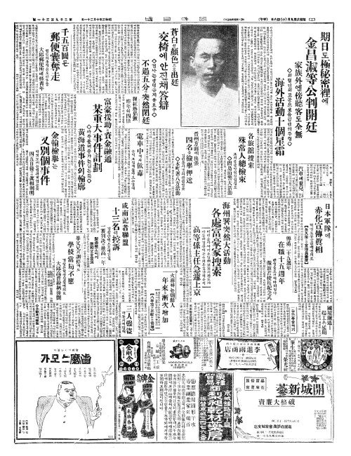 - 期日(기일)도極秘密裡(극비밀리)에 金昌淑等公判開廷(김창숙등공판개정)