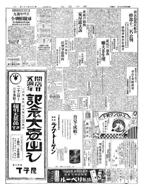 - 朝鮮體育會主催(조선체육회주최)、本社後援(본사후원) 九週年(구주년)마즌 全朝鮮蹴球(전조선축구)