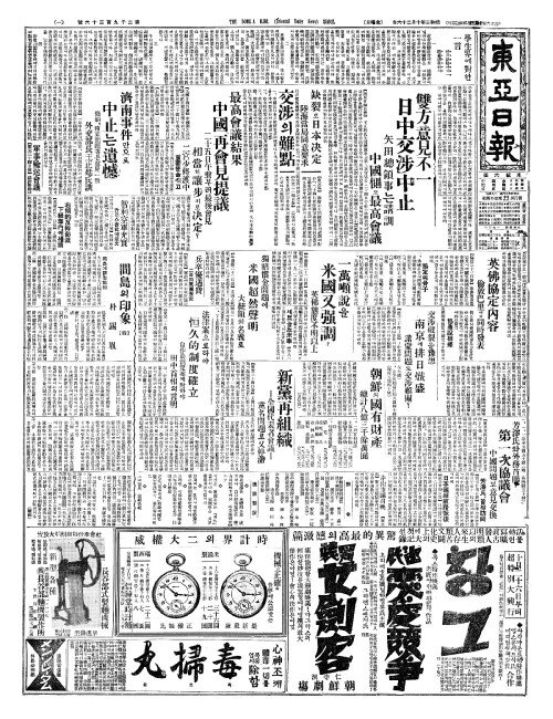 - 交涉破裂(교섭파열)을豫想(예상) 南京(남경)에排日熾盛(배일치성)