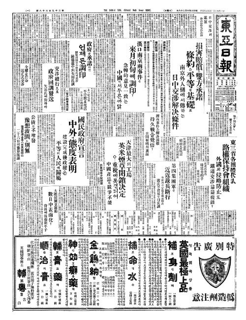 - 漢口南京兩事件(한구남경양사건)은 來月初旬(내월초순)에調印(조인)?