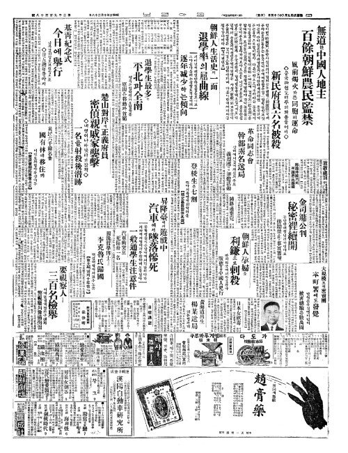 - 無道(무도)한中國人地主(중국인지주) 百餘朝鮮農民監禁(백여조선농민감금)