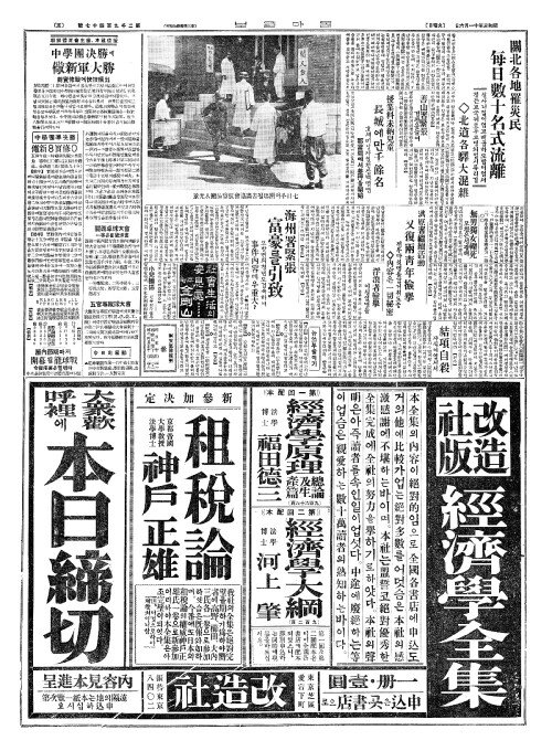 - 關北各地罹災民(관배각지이재민) 每日數十名式流離(매일삭십명식류리)