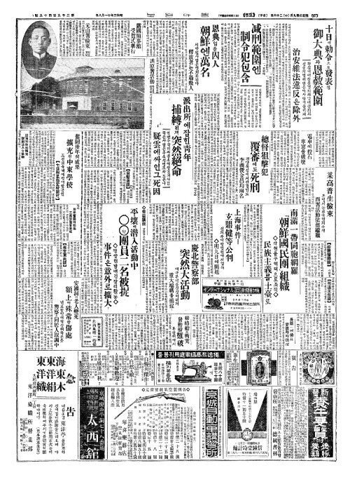 - 十日(십일)에勅令(칙령)으로發表(발표)될 御大典(어대전)과恩赦範圍(은사범위)