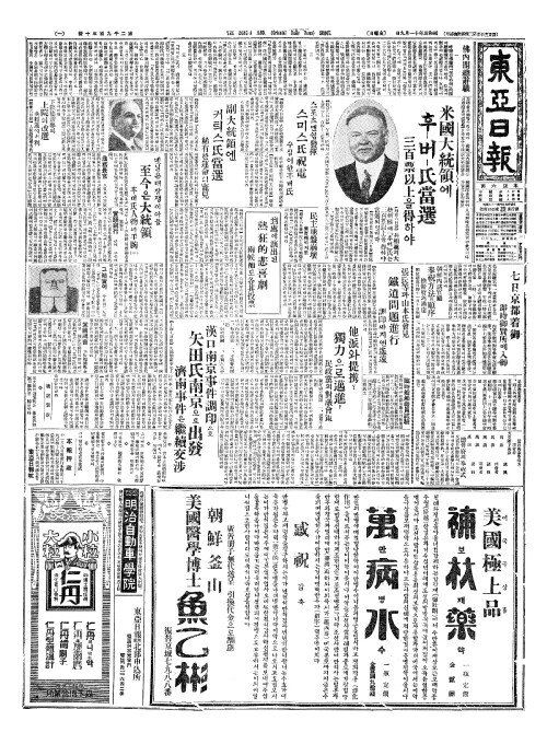 - 米國大統領(미국대통영)에 후—버—氏當選(씨당선)