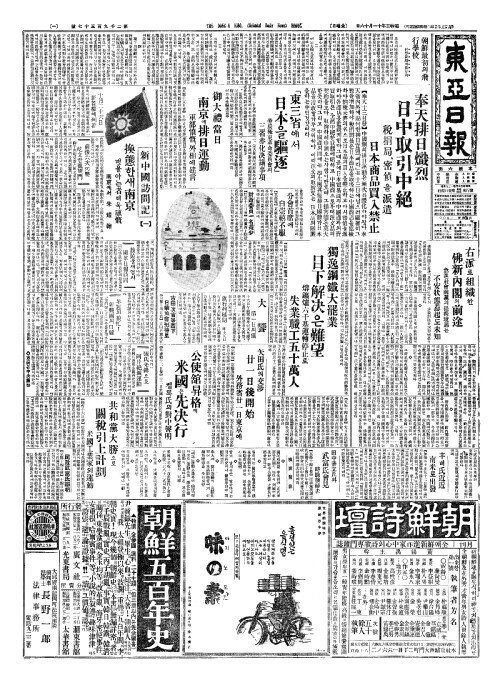 - 奉天排日熾烈(봉천배일치렬) 日中取引中絕(일중취인중절)