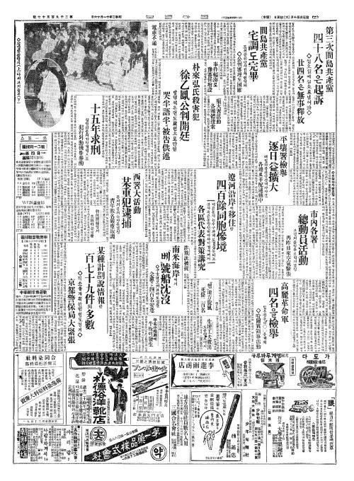 - 第三次間島共產黨(제삼차간도공산당) 四十八名(사십팔명)은起訴(기소)