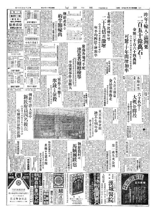 - 昨年(작년)에輸入(수입)된滿洲粟(만주속) 二百五十餘萬石(이백오십여만석)!