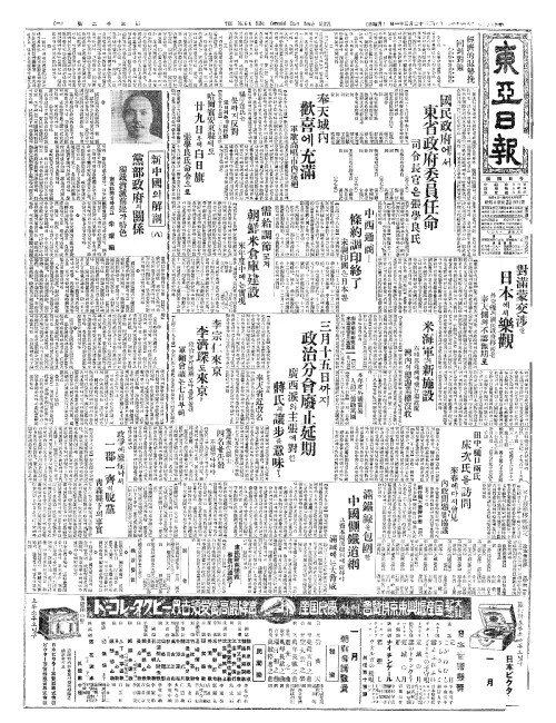 - 國民政府(국민정부)에서 東省政府委員任命(동생정부위원임명)