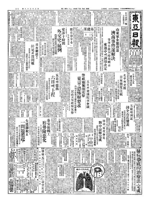 - 山東軍全部撤退(산동군전부철퇴) 濟南事件遂解决(제남사건수해결)