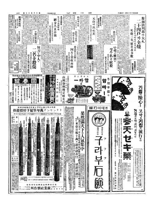 - 慶南陜川郡(경남합천군)에大火(대화) 二十四戶(이십사호)가全燒(전소)