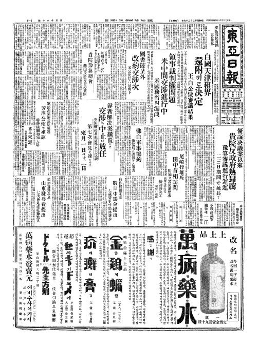 - 白國天津租界(백국천진조계) 還附(환부)키로决定(결정)