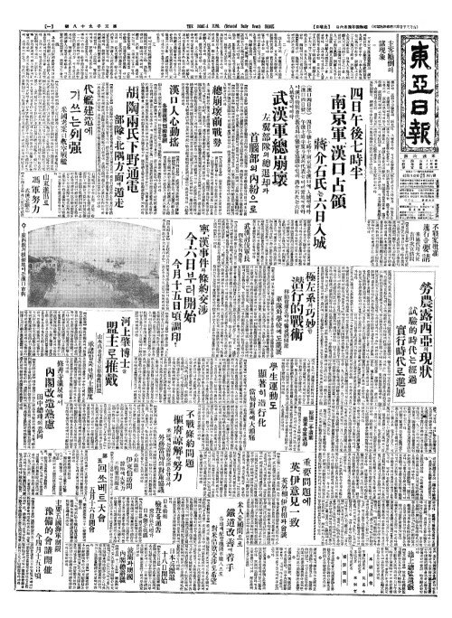 - 四日午後七時半(사일오후칠시반) 南京軍(남경군)、漢口占領(한구점영)