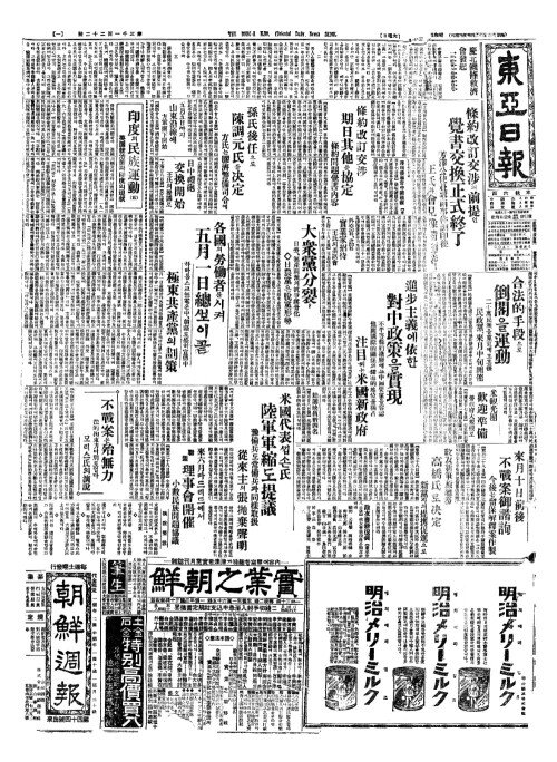 - 平壤勞聯大會(평양노련대회) 紛糾(분규)로多數退塲(다삭퇴장)