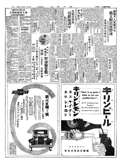 - 仁川靑年同盟(인천청년동맹) 各班對抗野球(각반대항야구)